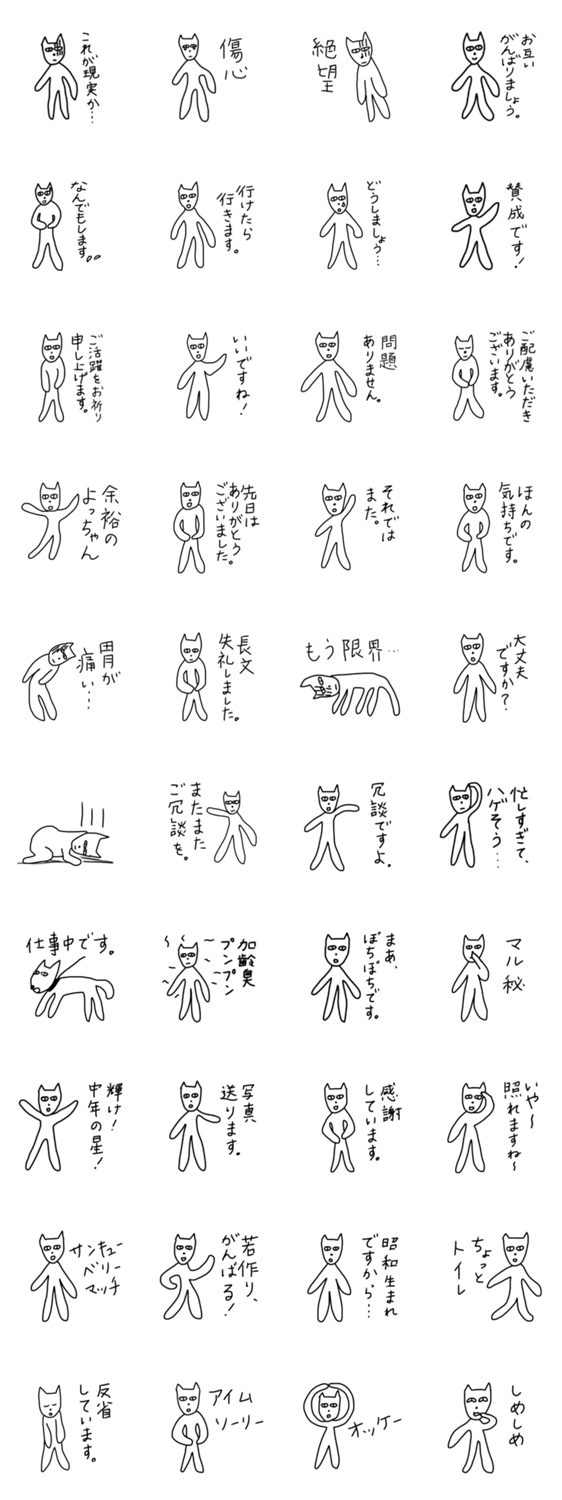 白ネコのあいうえお・・・ってるスタンプ
