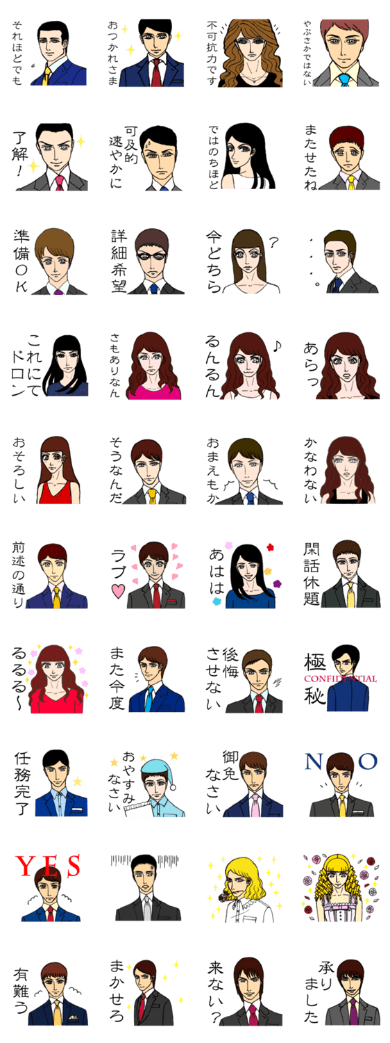 職場の同僚、学校、日常生活に使える美男・美女スタンプ。オン・オフ問わず使用可能な汎用スタンプ。仕事でもプライベートでも!