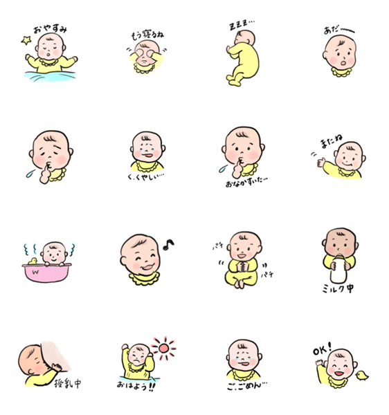 | スタンプ説明 | はらぺこキャンディーの赤ちゃんシリーズ。赤ちゃんならではの可愛い仕種のスタンプです。 |