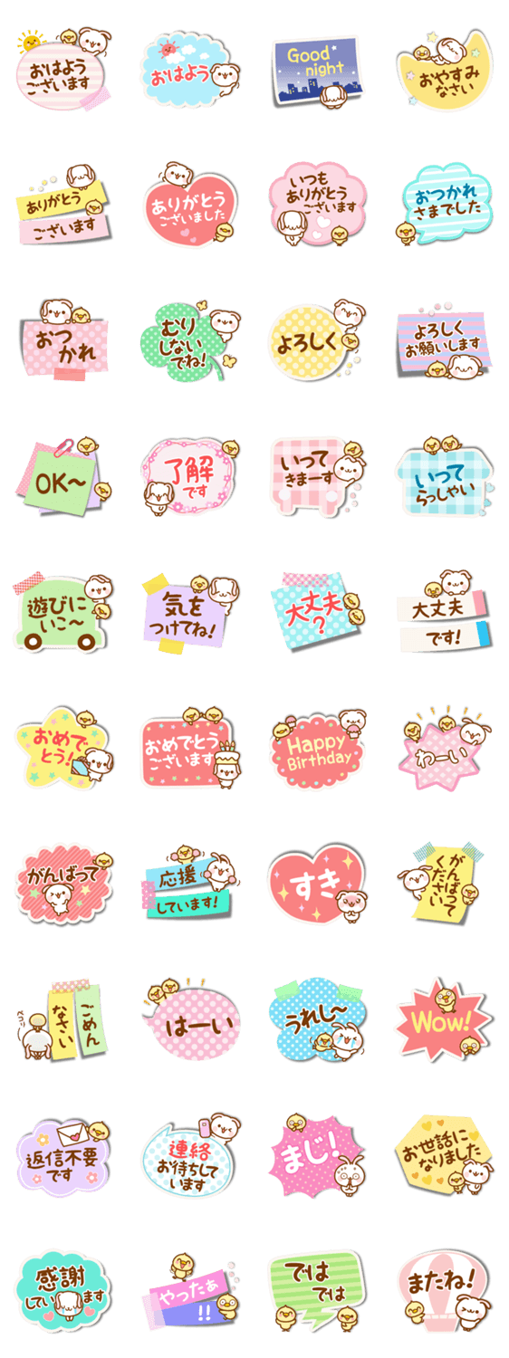 ペタッと可愛く使える付箋やシールのスタンプです♪ 「たれ耳うさぎ」とその仲間たちが楽しくメッセージを届けます♫
