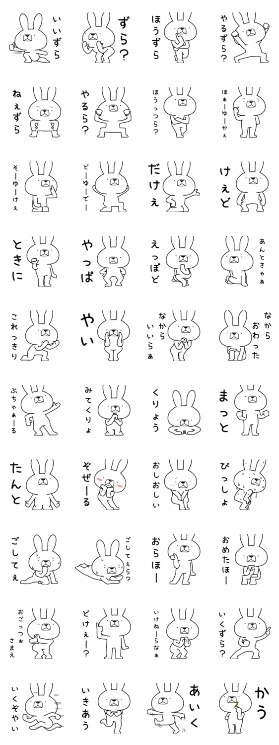 いろんな方言をつかううさぎのスタンプ諏訪弁編2(長野・南信濃・信州、そうでない方も使えるかも。また違う県verに似た方言が見つかるかも)