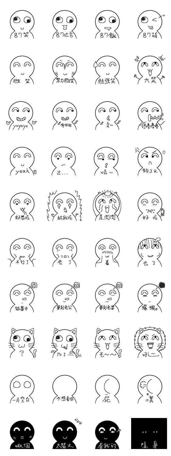 白ネコのあいうえお・・・ってるスタンプ