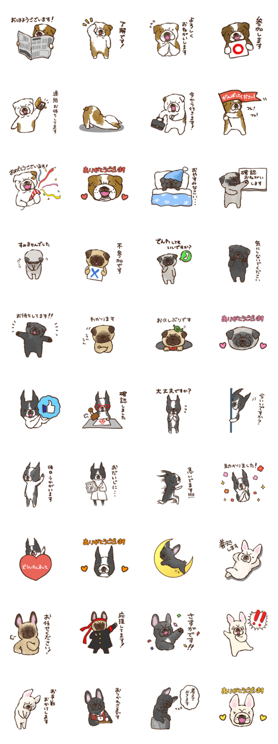 はなぺちゃの代表とも言える4犬種の敬語スタンプです!