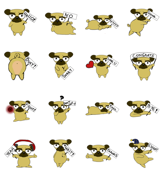 毎日のメッセージはこのパグステッカーでもっと面白くて可愛いになる。