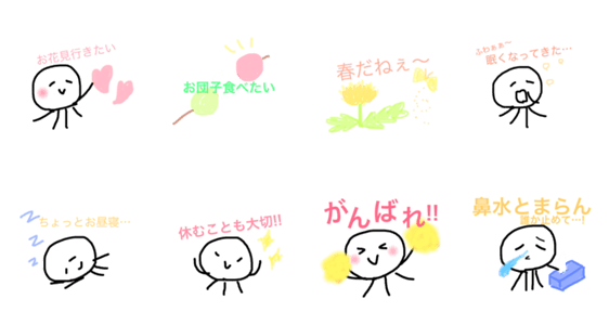やる気のないクラゲの春の様子を表したスタンプです。お花見行きたい!お団子食べたい!…だけど花粉が(´;ω;`)という方にオススメします。