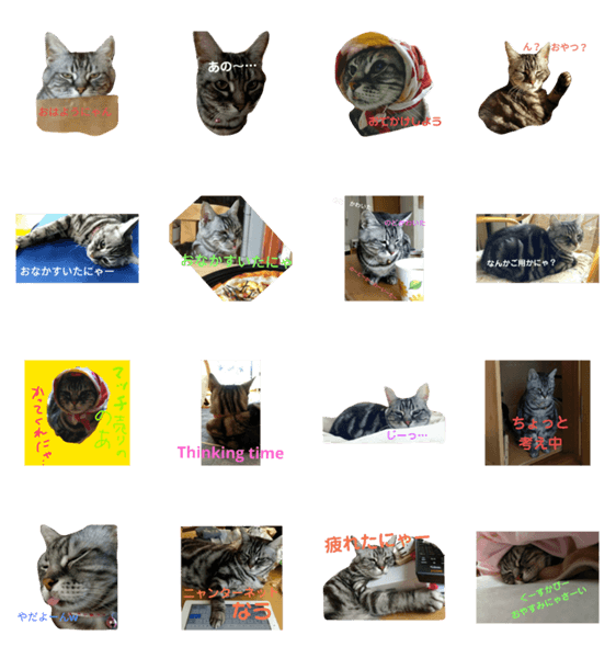 | スタンプ説明 | 自称(猫称)「ウルトラ可愛い」アメショーの、のあくんです。実写で作ってみました。 |