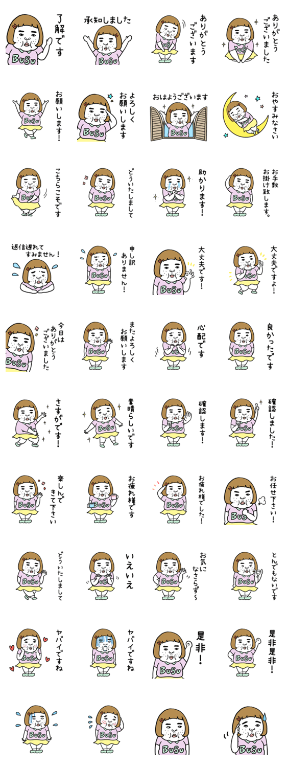 憎めないブスの敬語編の第3弾が出ました!日常でよく使う言葉もたくさん!ブサイクだけど愛嬌があります。上司先輩など年上や目上の方にブサカワスタンプで女子力アップ!