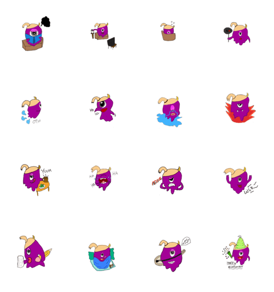 | スタンプ説明 | a monsters figure who will wear his tags all the time |