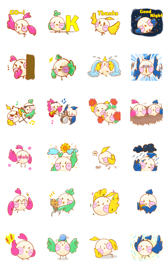 | スタンプ説明 | The chubby birds like play with all friends. |