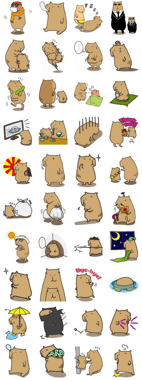 カピバラ親子のゆる~い日常をスタンプにしました。デカピと子カピのゆるやかな日々。無表情なのに感情表現豊かなカピたちを日常のお供にどうぞ。
