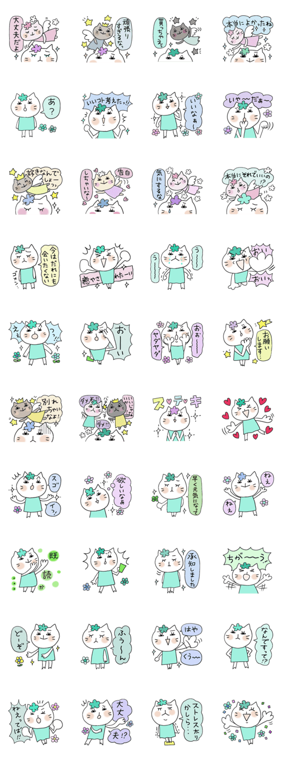 白い猫のくーちゃん第二弾は迷える女子。日常あいさつは第一弾、便利なスタンプ白い猫のくーちゃんをぜひご覧ください。