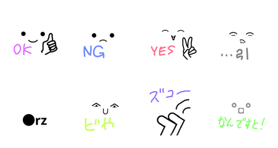 スタンプ説明 顔をすべて文字で作ったスタンプです。
