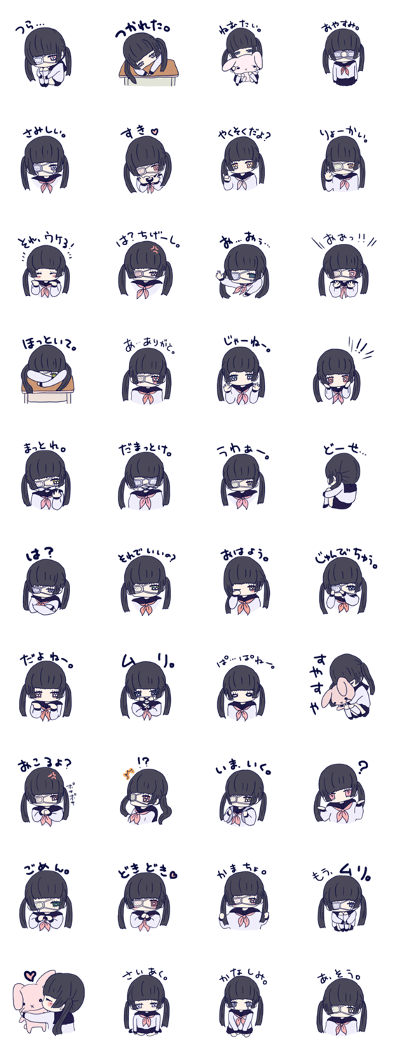 ちょっぴり暗い、セーラー服にツインテールの黒髪少女のスタンプ。