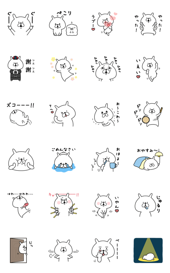 | スタンプ説明 | 過去タイトル「ゆるうさぎ10」&「ゆるうさぎ 使える。」から、厳選24種が動くスタンプになって再登場! |