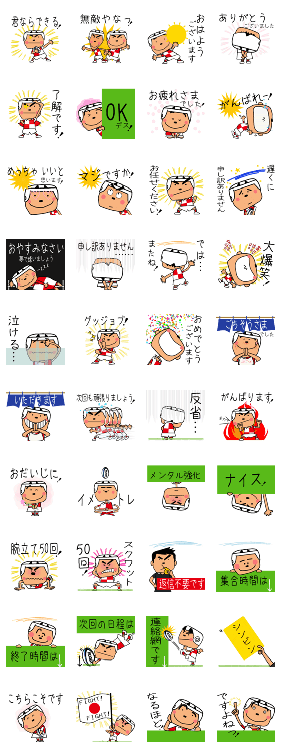 | スタンプ説明 | スポーツ[ラグビー]が大好き!ラグビー部の子供がいるママ!ラグビー選手のお母さん!ラグビー少年のママの為のスタンプです。練習の予定や連絡のやりとりに便利☆ |