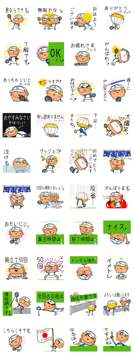 | スタンプ説明 | スポーツ[テニス]が大好き!テニス部の子供がいるママ!テニス選手のお母さん!テニス少年少女のママの為のスタンプです。練習の予定や連絡のやりとりに便利☆ |