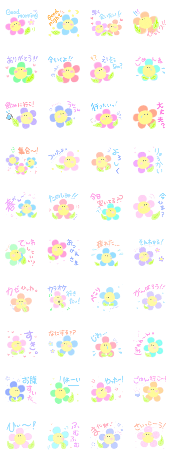 おはなちゃんたちの日常会話編です。春にぴったりのスタンプです。友達に家族に彼氏・彼女にどうぞ!