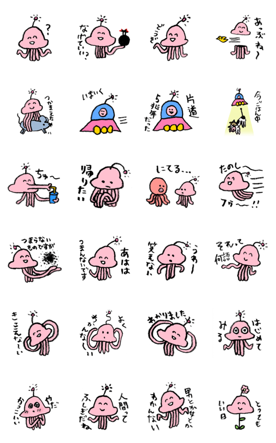 初めて地球へ旅行にやってきたピンクの宇宙人。