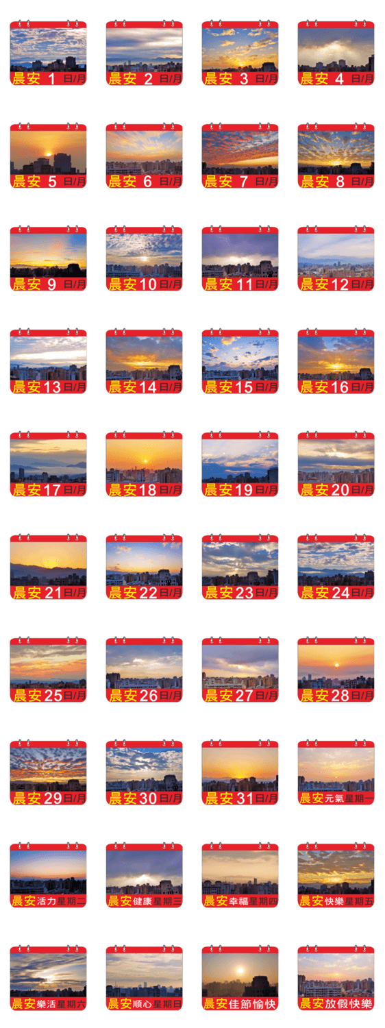| スタンプ説明 | Get up early every day Observing the sunrise from the balcony Welcome to the exclusive calendar map of each day of the forest house |