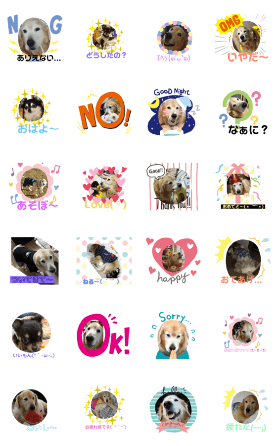 ゴールデンレトリバー拳四狼くんとチワワの麗音くん大和くんの癒し系スタンプです❤