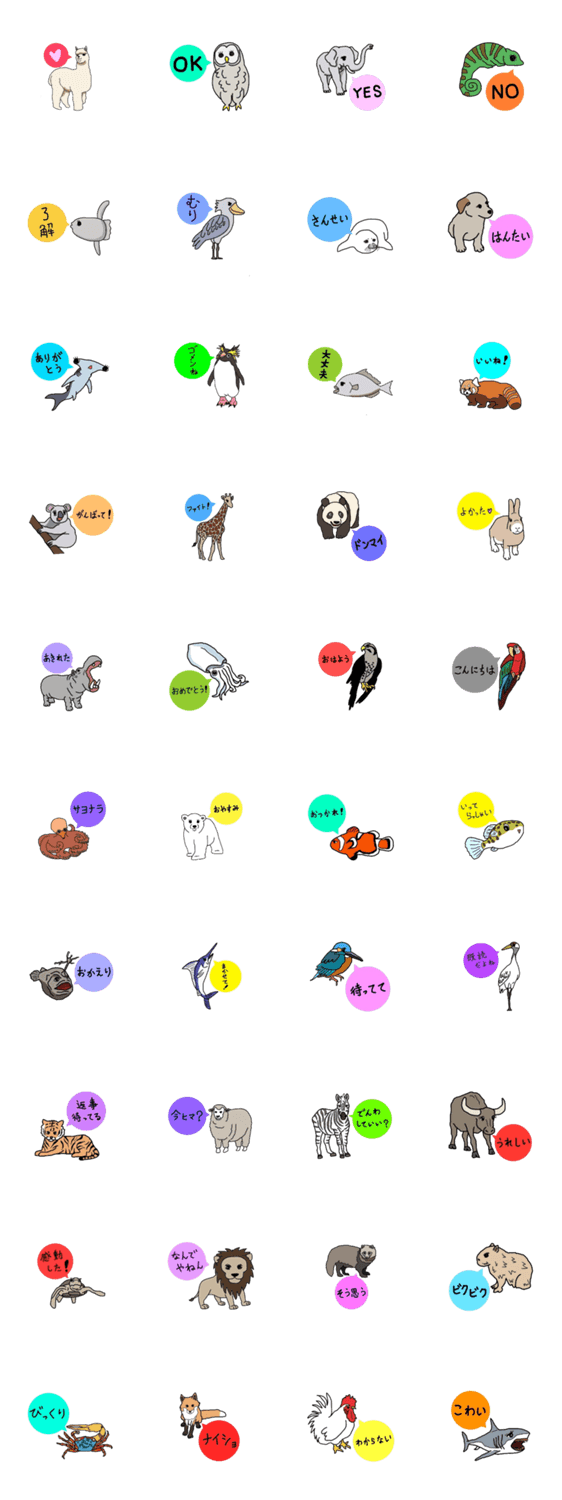 生き物のスタンプです。日常的に使えるスタンプなのでいろんなシーンにどうぞ。