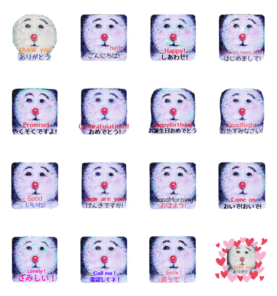 LINE Creators Studioでつくったスタンプです。 雪だるまのキャラクターのデザインを、お絵描きした作品です。