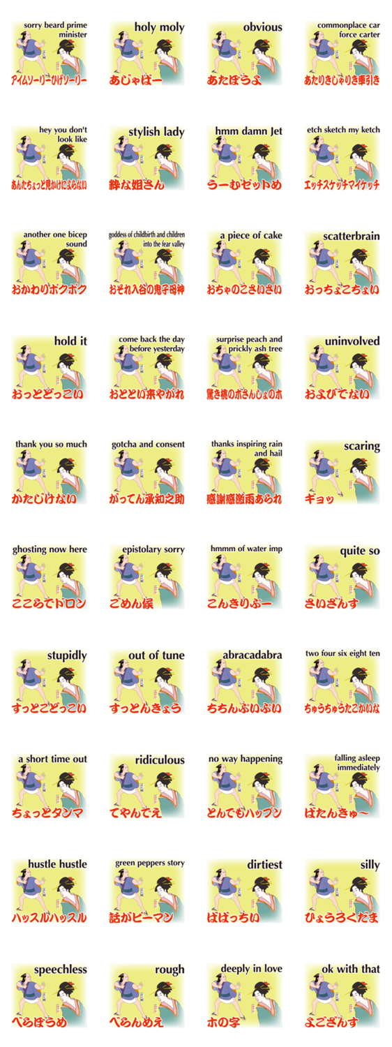 ゑ之輔・ゐ子子による江戸から昭和までの言葉のスタンプです。
