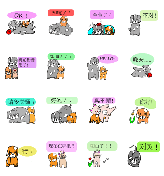 Sabori and Rando are dog . Another is a cat 'corolin'. They are always together, enjoy every day. I am glad if you watch this sticker and become fun.