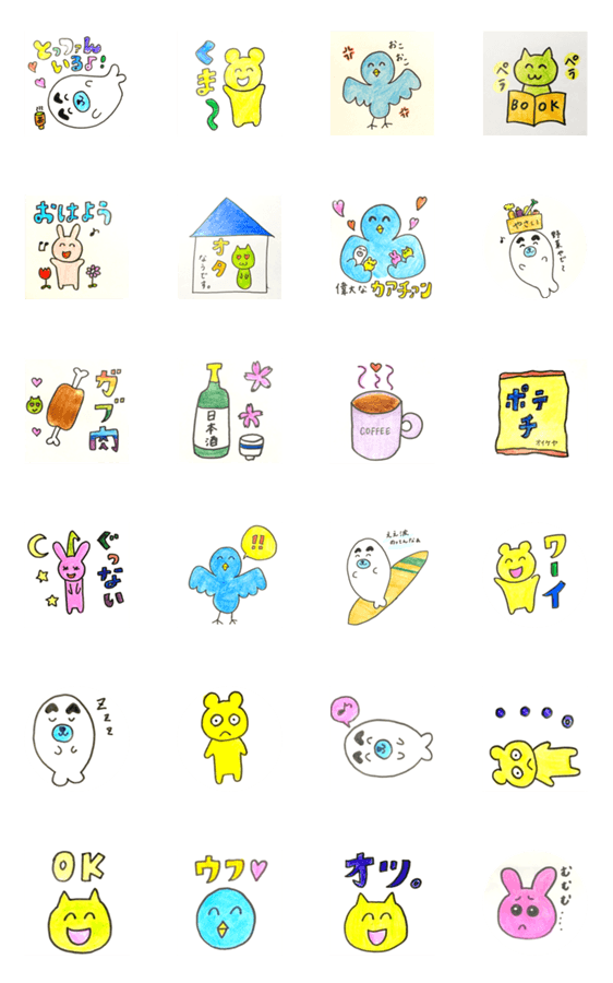 我が家をアニマルかわいく表現しました!あざらし父さん、小鳥かあさん、くま、ねこ、うさぎの子どもたちです!