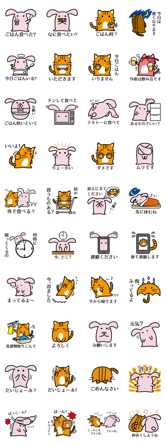 家族やカップルで気軽に使える連絡用のスタンプです。毎日同じ文面を入力する手間が省けて、家族や親しい方とのトークがチョッと楽しくなるかも♪