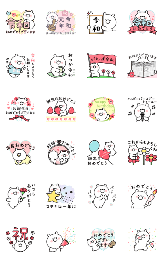 ▶︎動く!ガーリーくまさんのお祝い(令和) -LINEスタンプマニア