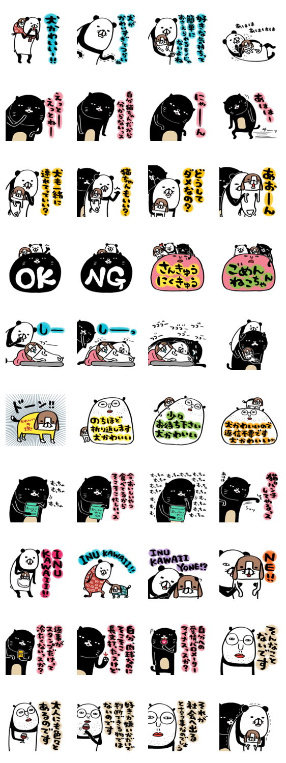 | スタンプ説明 | パンダと犬とクロネコヤマモトにおじさんが少し混じる。 |