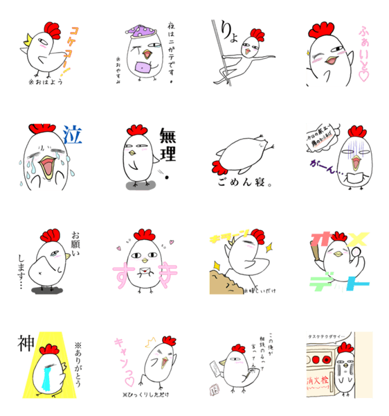 にわとりに髪型が似た知人を見て自分用に作りたくなってしまって完成したスタンプです