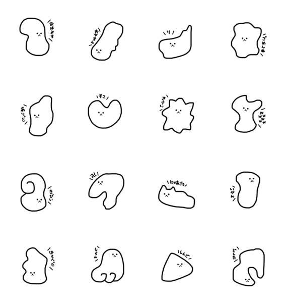 自由に体を変形できる【ふりーちゃん。】ほっこりゆる〜いスタンプです。