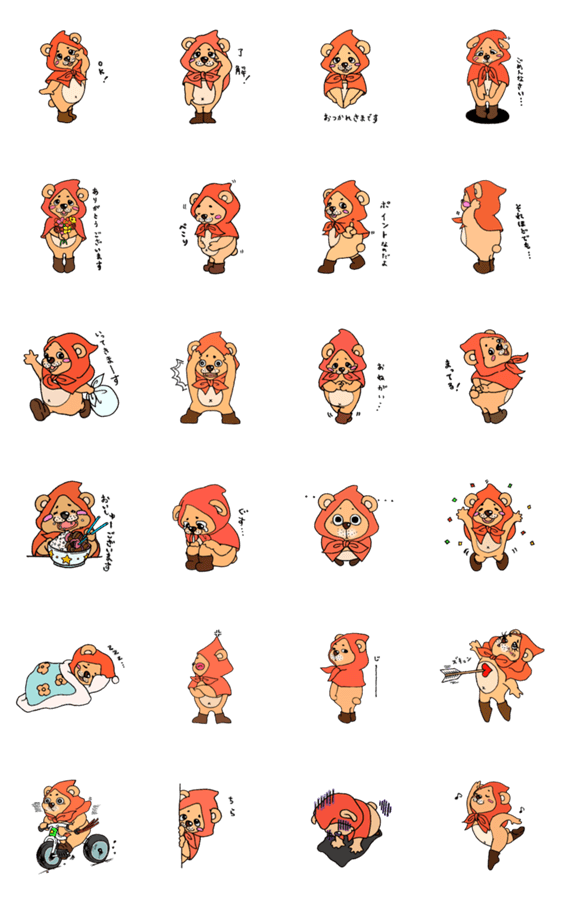赤ずきんならぬ、くまずきん。 赤いずきんをかぶった可愛いくまさんのスタンプ。