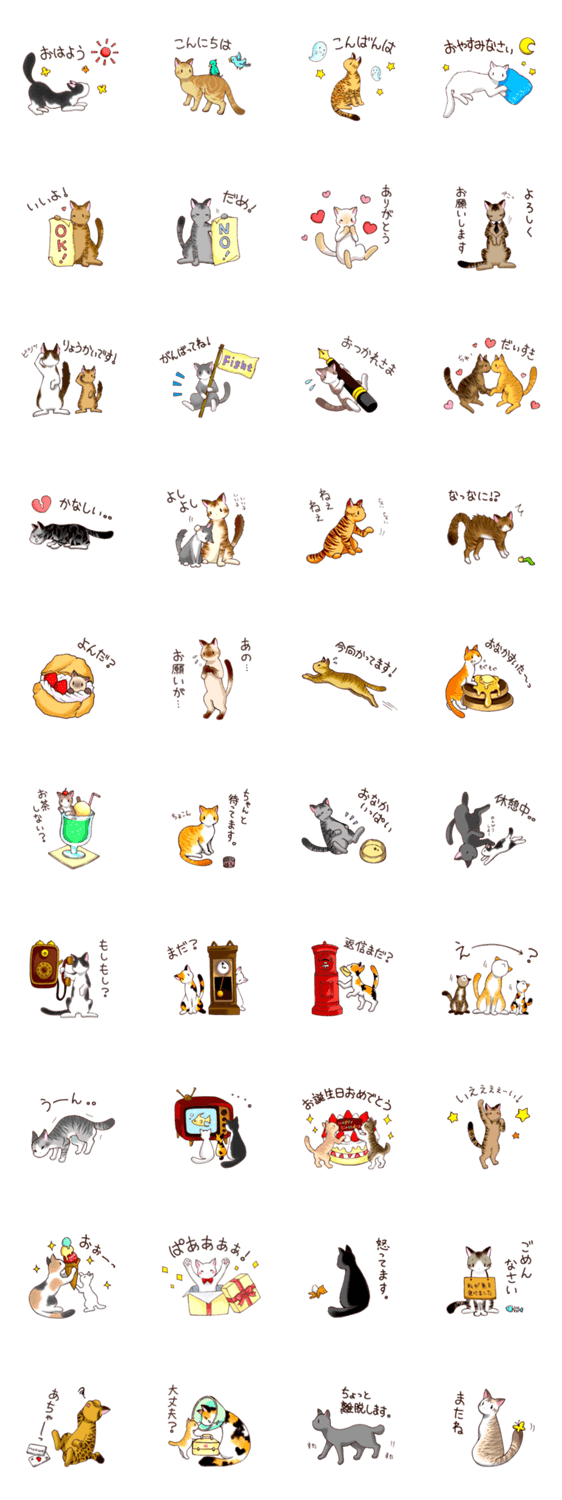 とってもシンプルで可愛い52匹の猫たちのスタンプです。