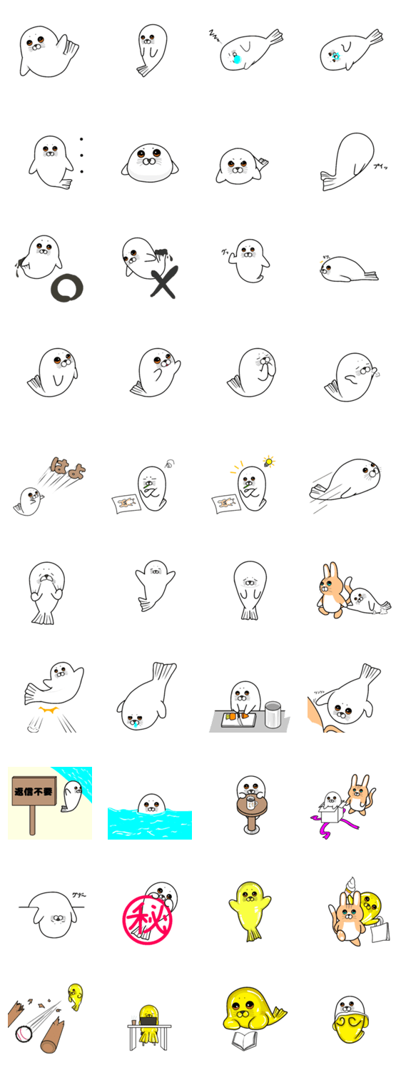 自由気ままなアザラシ、ポコザラシのスタンプです。