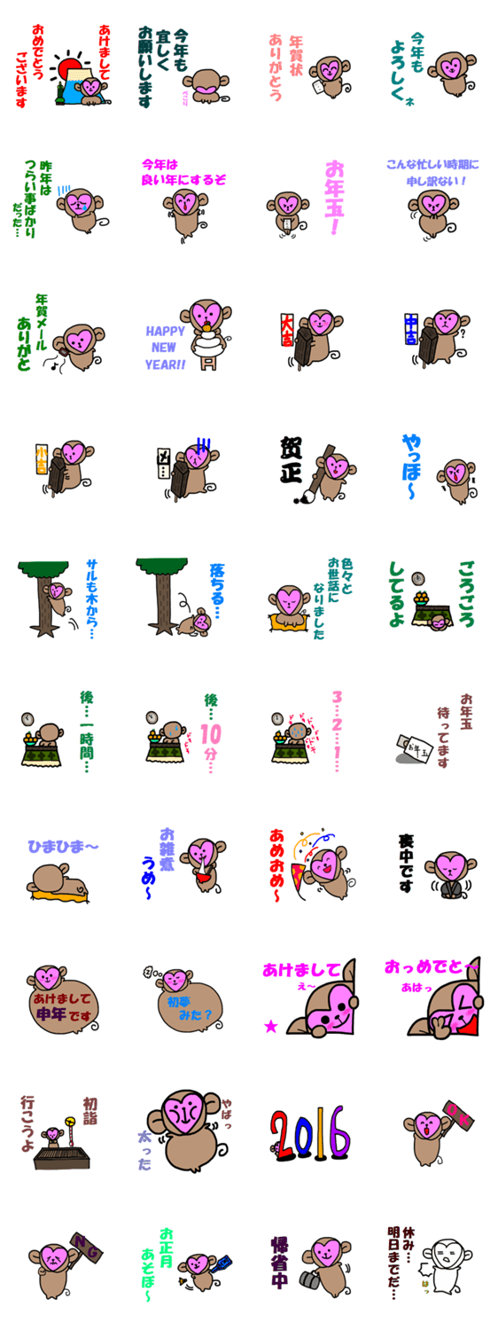 2016年「申年」年末年始スタンプ -LINEスタンプマニア