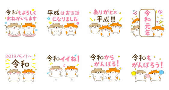 | スタンプ説明 | 新元号をハムスターのキャラ(通称チョコハム)でお祝い☆ |
