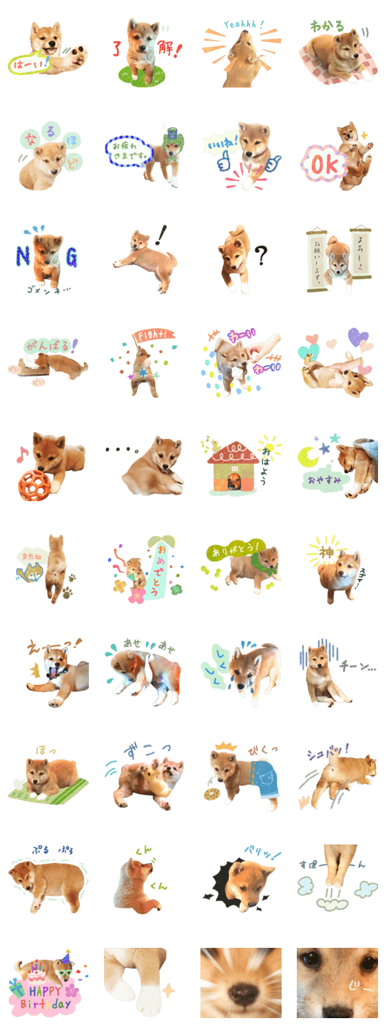 | スタンプ説明 | 豆柴タイプの柴犬、こつぶくん。 仔犬のバージョンで基本系のスタンプを集めました。 |
