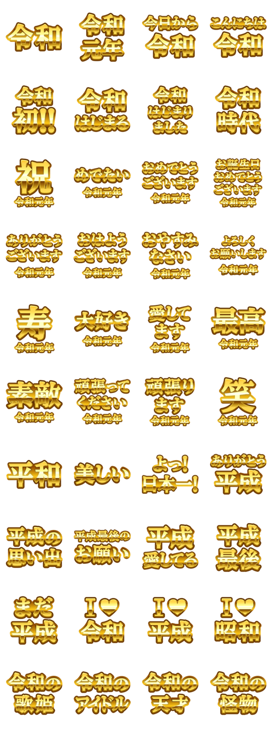 新元号「令和」の金色でか文字スタンプです。新元号スタンプ特集。
