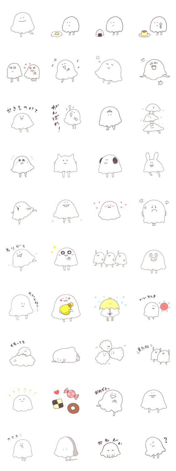 ふわっとした癒し系のおばけスタンプです。足が出ているのが基本スタイル。必要なときは手も出ます。ときどき化けてみたり…