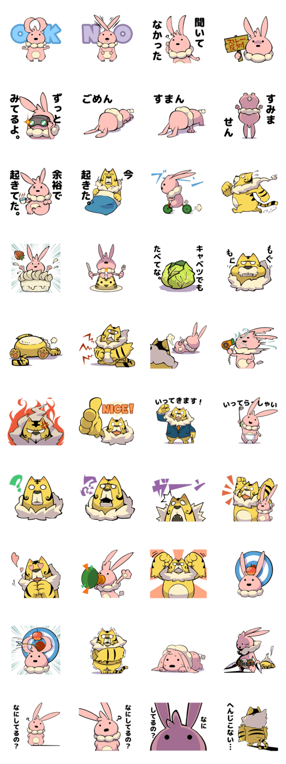かわいくてちょっとブラック。そんなうさぎととらの汎用的なスタンプです。
