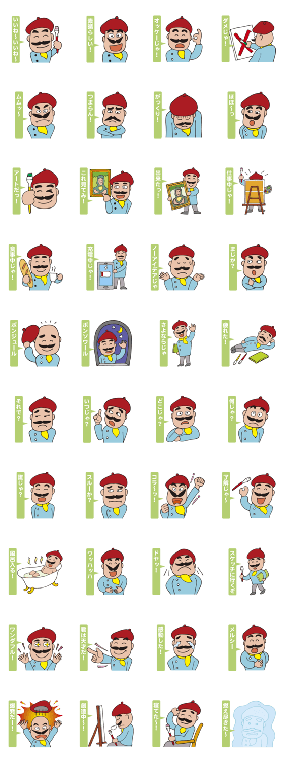人物画を専門に描くナントカ画伯のスタンプです。もちろん実在はしていません。