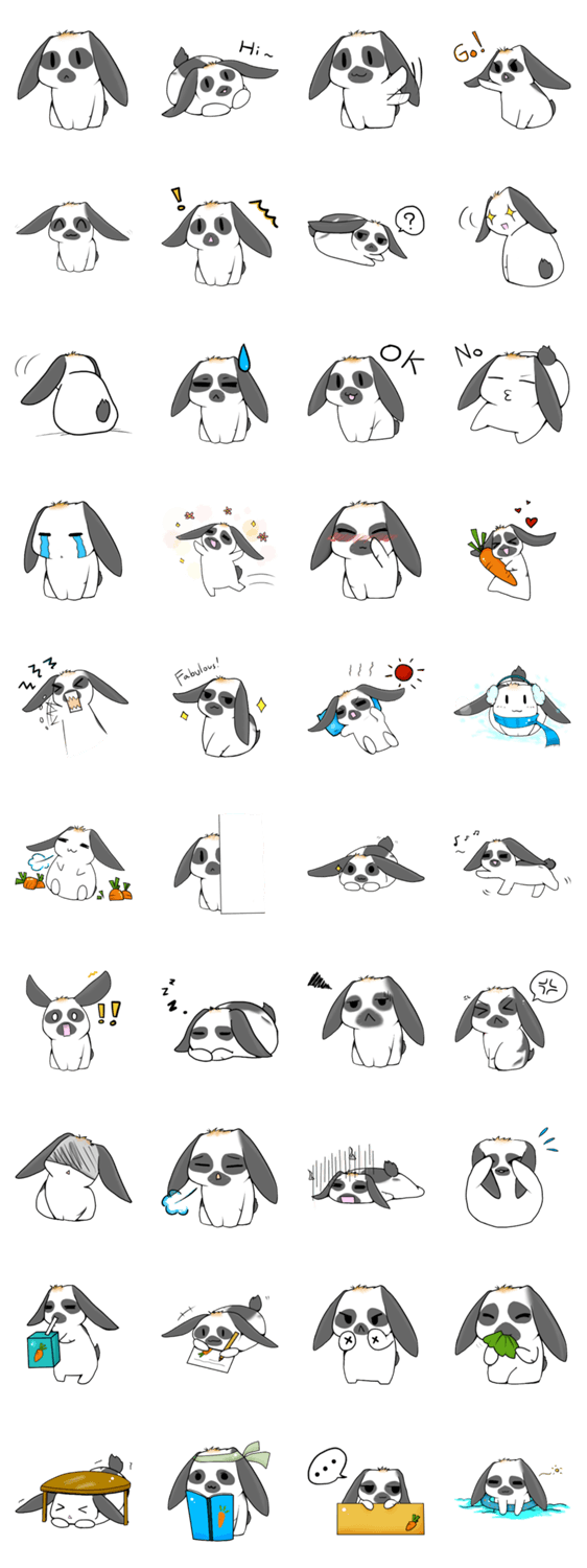 | スタンプ説明 | This playful, lovely, and fabulous (?) rabbit is a good companion to everyone! Though he spends time with dogs so much we're actually not sure if he's a rabbit. |