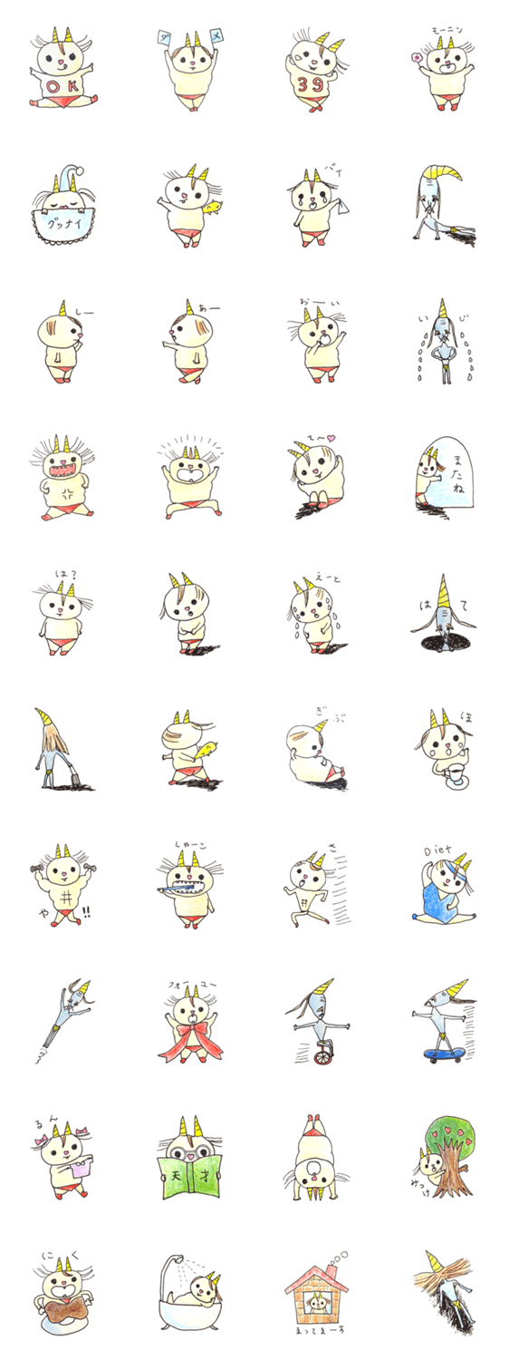 ぽっちゃりボディにあまいマスクのオニちゃんといじけキャラのオニいじさんが登場するかわいいなごみ系スタンプです