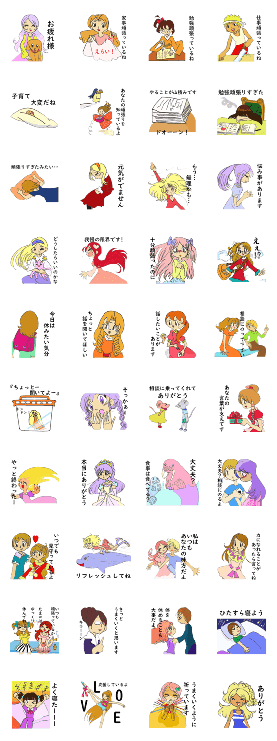 いつも頑張っているあなたに贈るスタンプです。頑張りすぎてませんか?支えてくれる言葉がここにあります。