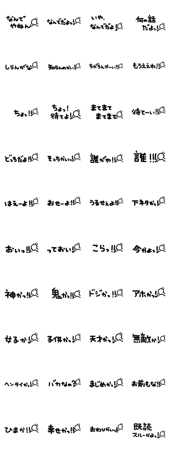 絵文字と合わせても使えるシンプルな手書き文字スタンプ。愛のある突っ込み冷たい辛口つっこみ、毒舌。家族友達、彼氏彼女、嫁旦那、パパママ、同僚上司部下に使いやすい♪