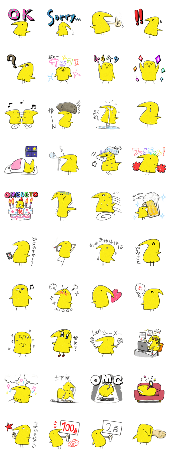 ちょっぴりシュールで手書き風のひよしスタンプです。ゆるっとだらっと人間臭い生き物です。