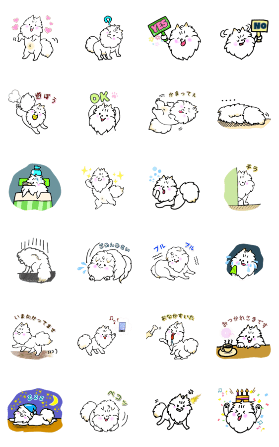 ホワイトポメラニアンのスタンプです 日常で使われる様々な表情を描いてます